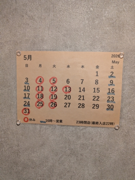 名古屋の居酒屋「鉄板台所すずや」のブログ 5月カレンダー
